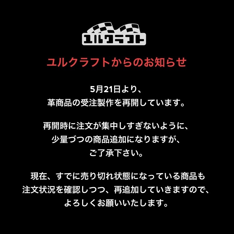 そして昨日5月21日より、革商品の受注製作を再開しています。