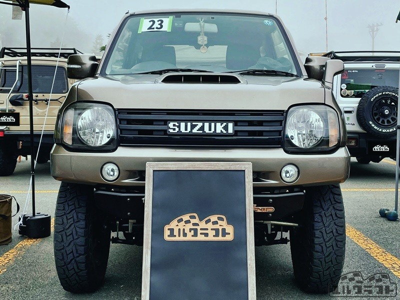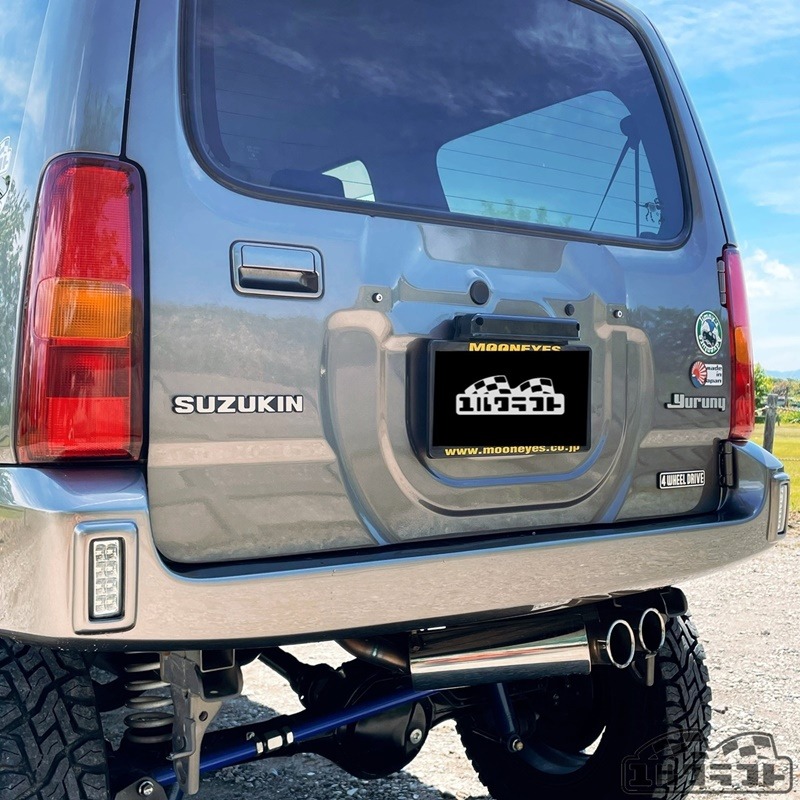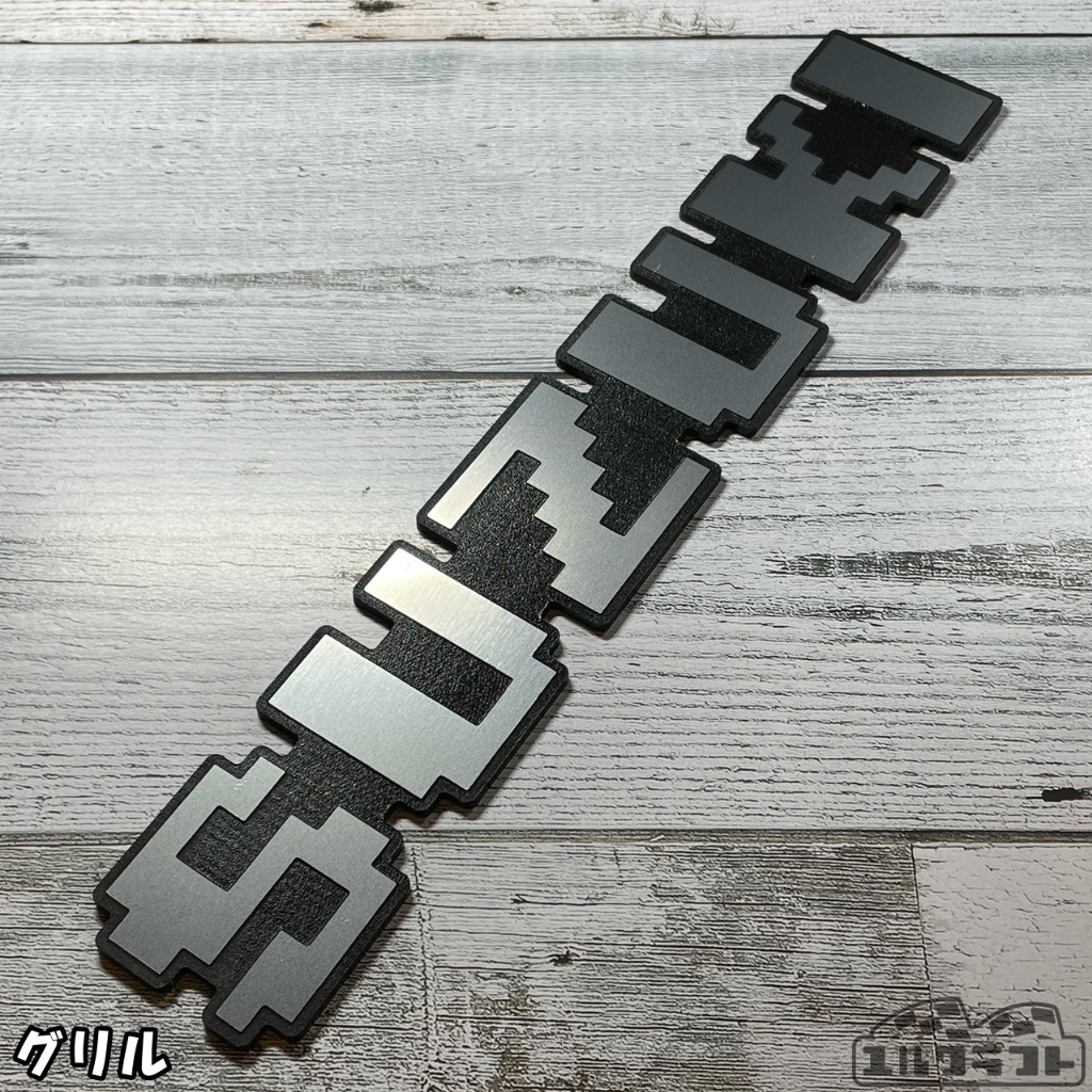 カクカクなジムニーには、カクカクなエンブレムが似合う?レトロゲームのタイトルのようなエンブレムです。